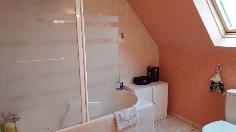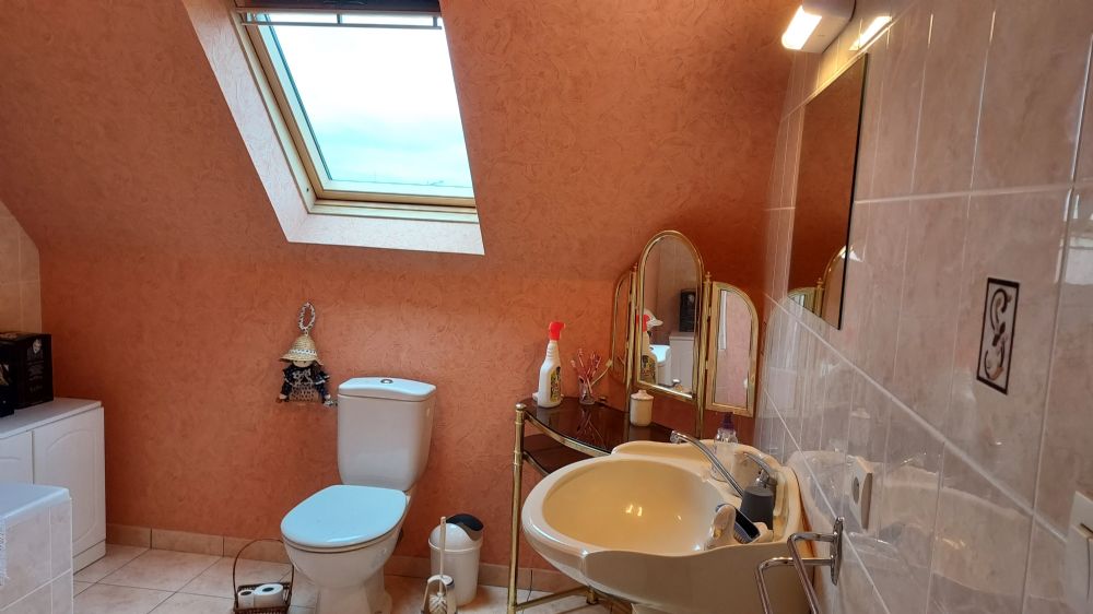 A l'étage, palier de dégagement desservant 3 chambres, une belle salle de bains avec W.C.